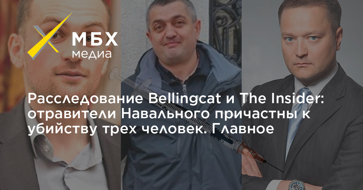 Расследовательская группа Bellingcat и издание The Insider опубликовали новое расследование, посвященное сотрудникам ФСБ, предположительно причастным к отравлению Алексея Навального. Журналисты выяснили, что отравители могли стоять за убийствами как минимум трех человек в период с 2014 по 2019 годы. Главные выводы расследования — в пересказе «МБХ медиа».