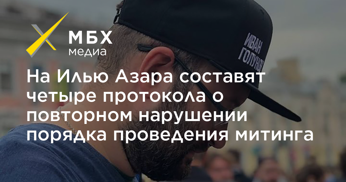 На журналиста и муниципального депутата Илью Азара собираются составить четыре протокола о повторном нарушении порядка проведения митинга ( ч.8 ст 20.2 КоАП) из-за акции в поддержку Алексея Навального. Об этом сам Азар сообщил «МБХ медиа».