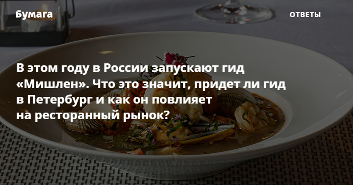 «Бумага» поговорила с рестораторами и критиками, собрала мнения экспертов и выяснила, почему мировой путеводитель так важен для ресторанного рынка, запустят ли его и в Петербурге и что произойдет, если «Мишлен» всё же доберется до нашего города.