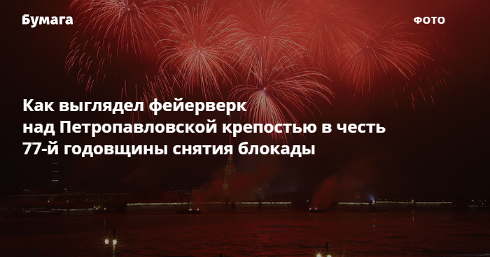 Как выглядел фейерверк над Петропавловской крепостью в честь 77-й годовщины снятия блокады. Одно фото