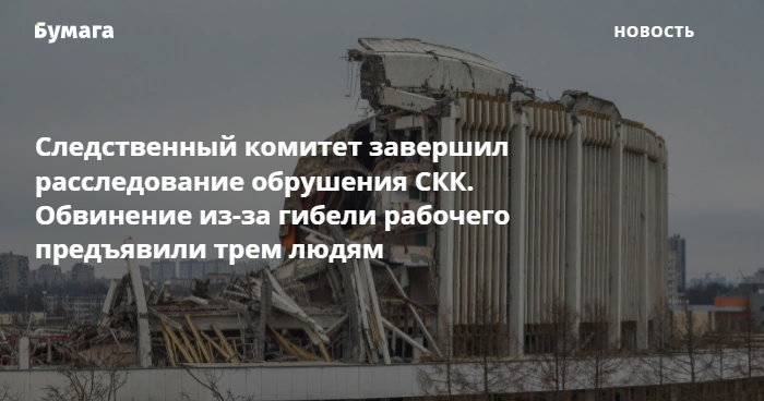 Следственный комитет завершил расследование уголовного дела об обрушении СКК, приведшем к гибели рабочего. Обвинение предъявили тремя людям, пишет «Фонтанка» без указания источника.