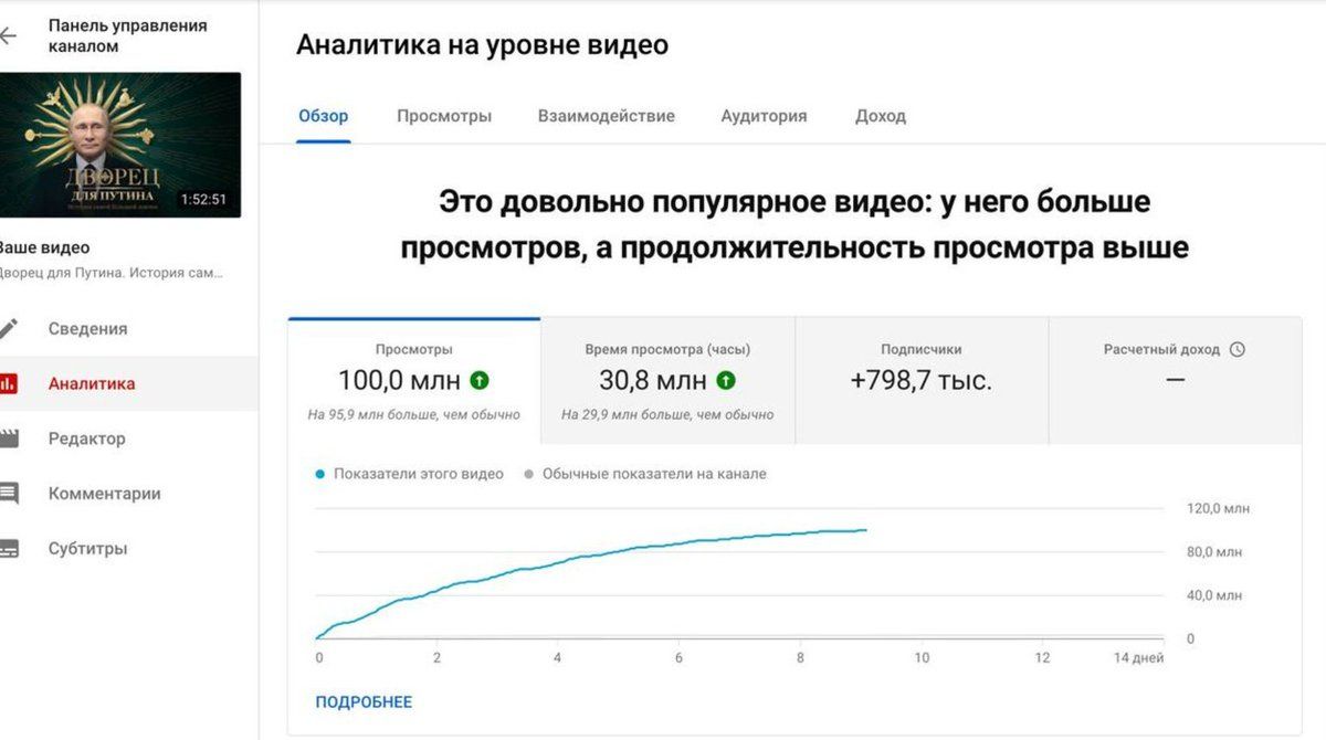 Фильм о «дворце Путина» посмотрели более 100 миллионов раз
