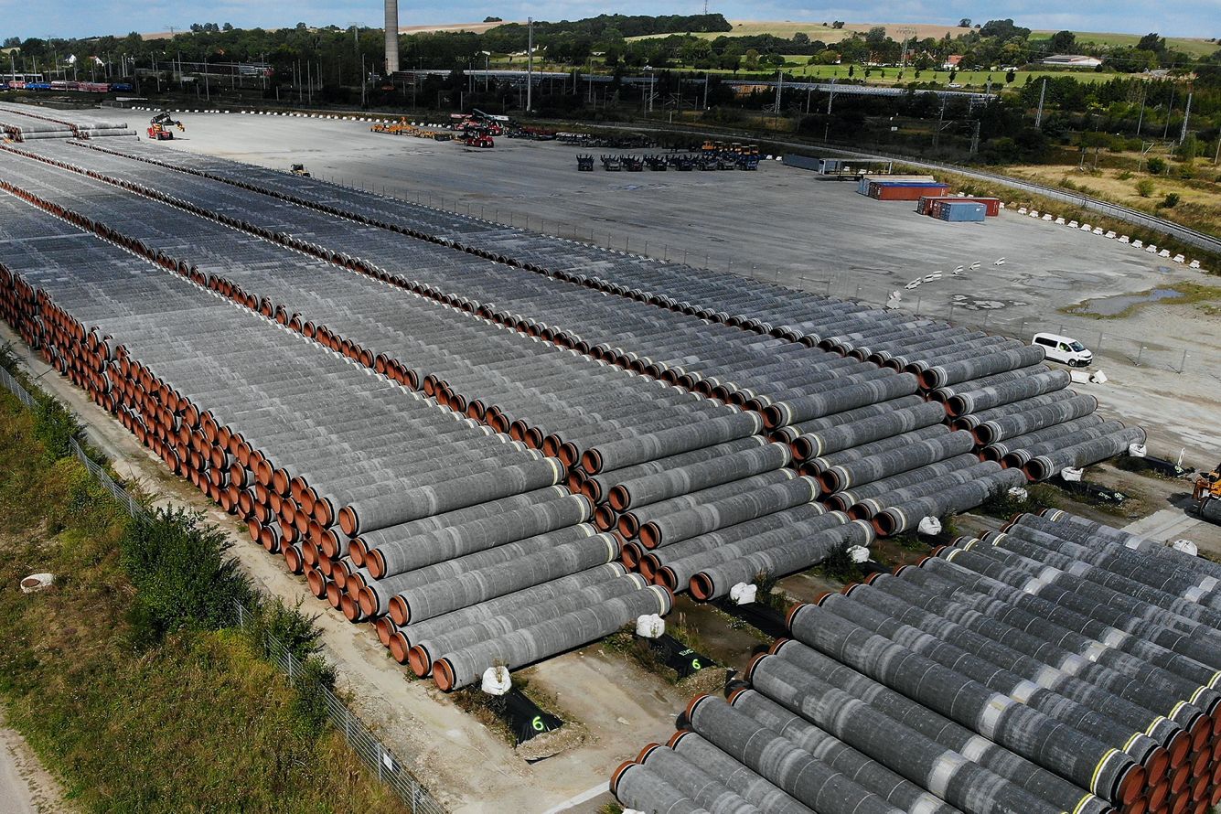 Hannibal Hanschke / Reuters / Scanpix / LETA Трубы для «Северного потока — 2» в порту Мукран. Засниц, Германия, 10 сентября 2020 года