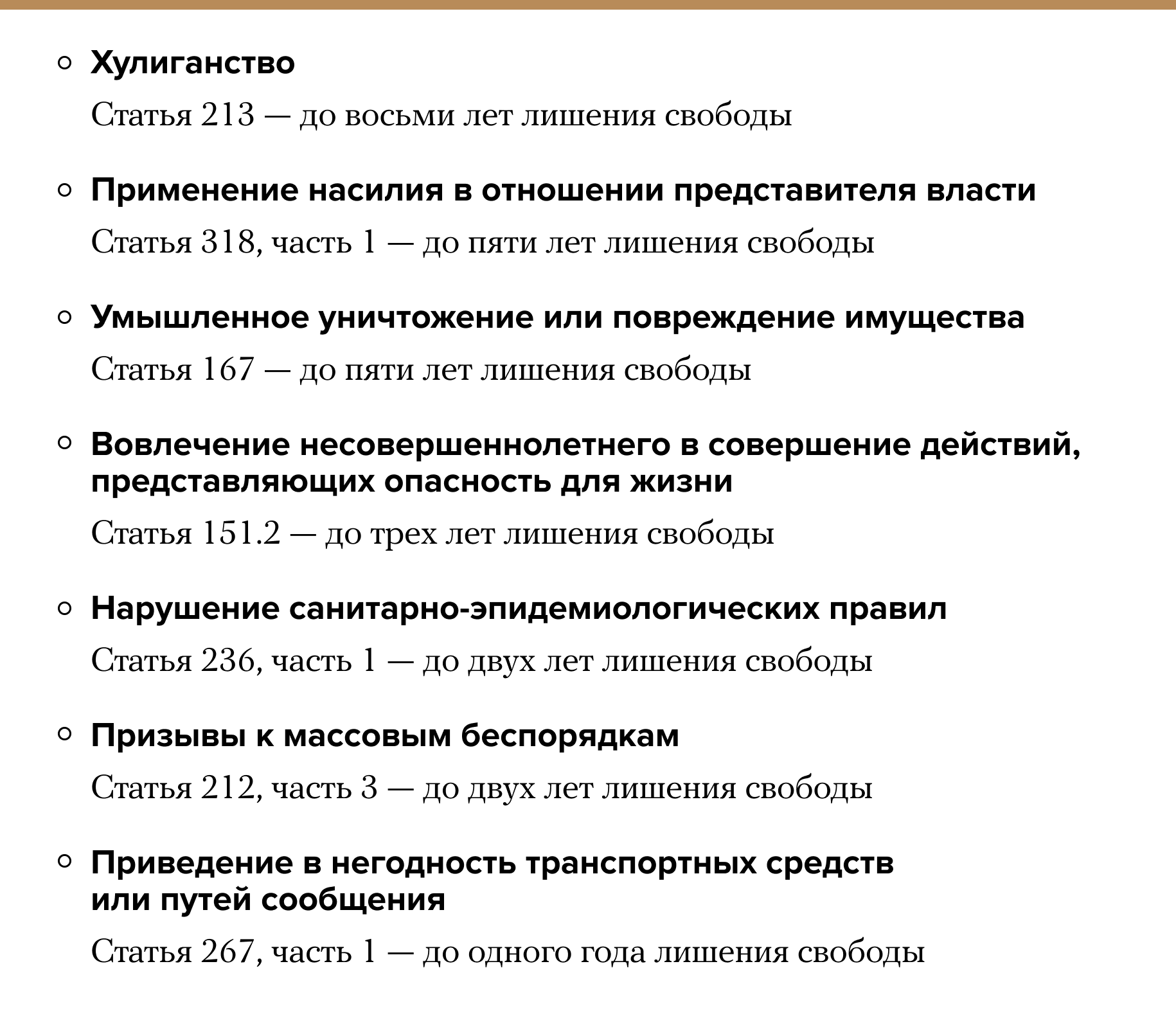 По каким статьям Уголовного кодекса преследуют сторонников Навального. И на какой срок их могут посадить. В одной картинке