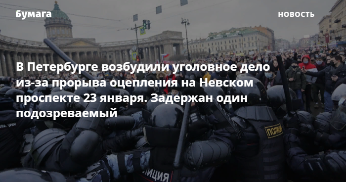 Как сообщает следствие, часть участников акции 23 января пыталась прорвать выставленное силовиками оцепление на Невском проспекте. Из материалов дела следует, что эти люди применили насилие к сотрудникам правоохранительных органов и нанесли им телесные повреждения.