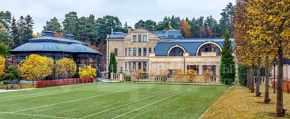 На первом месте — дворец в Барвихе площадью 3 тысячи квадратных метров, он находится в 7 километрах от МКАД по Рублево-Успенскому шоссе. Здание выполнено из розового мрамора, на первом этаже есть зимний сад, на участке — дом для персонала.