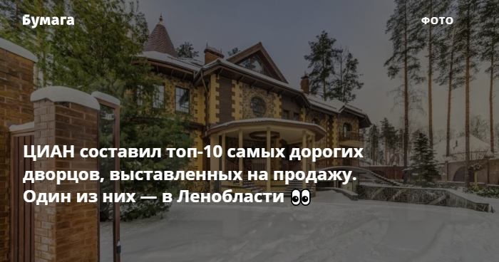 Аналитики ЦИАН составили рейтинг из десяти самых дорогих дворцов и усадьб, выставленных на продажу на этом сайте недвижимости. Один из домов находится в Ленинградской области.