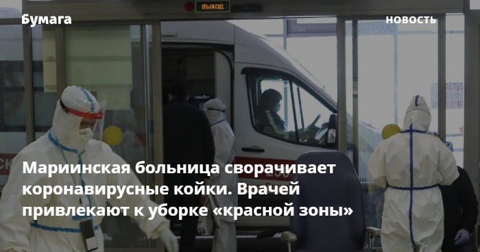 Как анонимно сообщили «Бумаге» два источника в учреждении, в начале февраля персонал Мариинской больницы привлекут к уборке «красной зоны», где располагаются коронавирусные койки. Когда уборка будет закончена, больница перестанет быть коронавирусным стационаром.