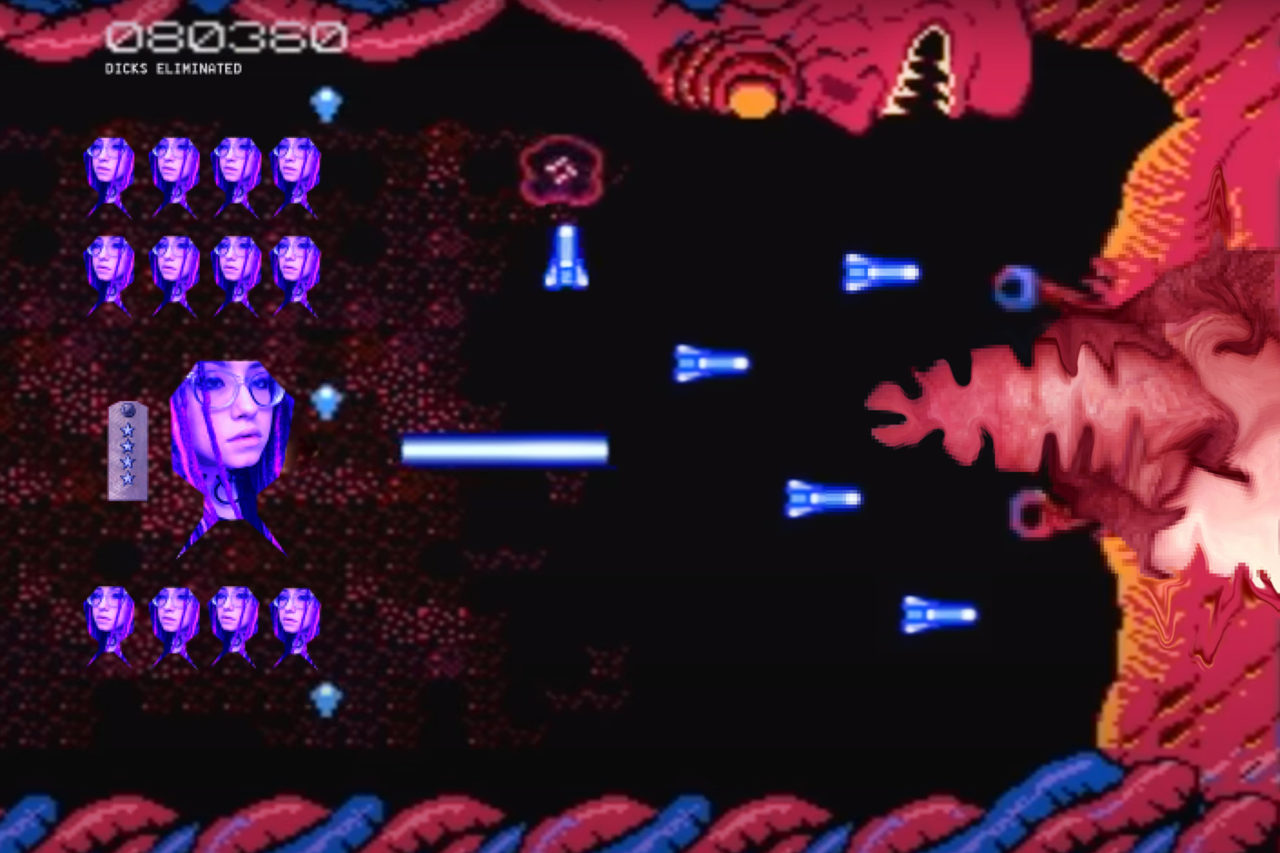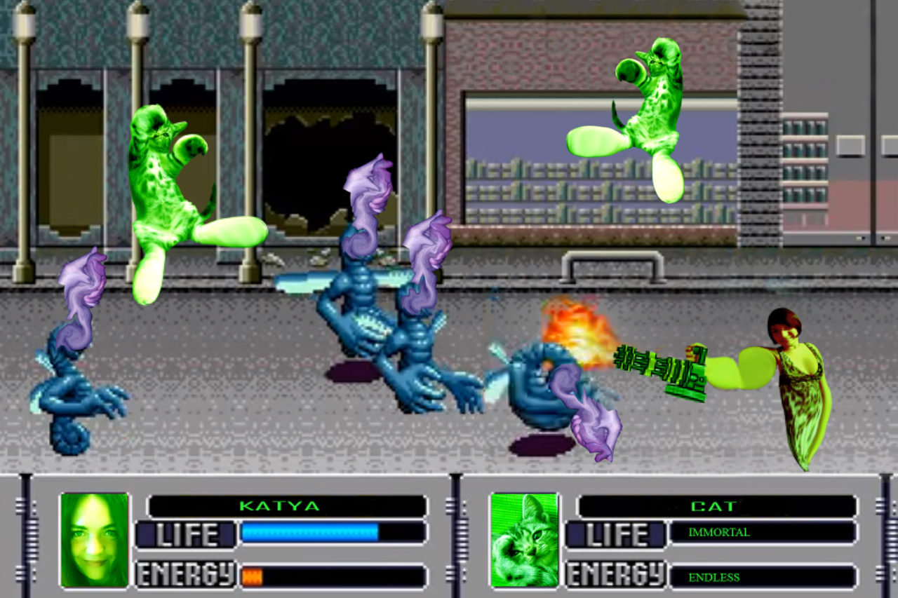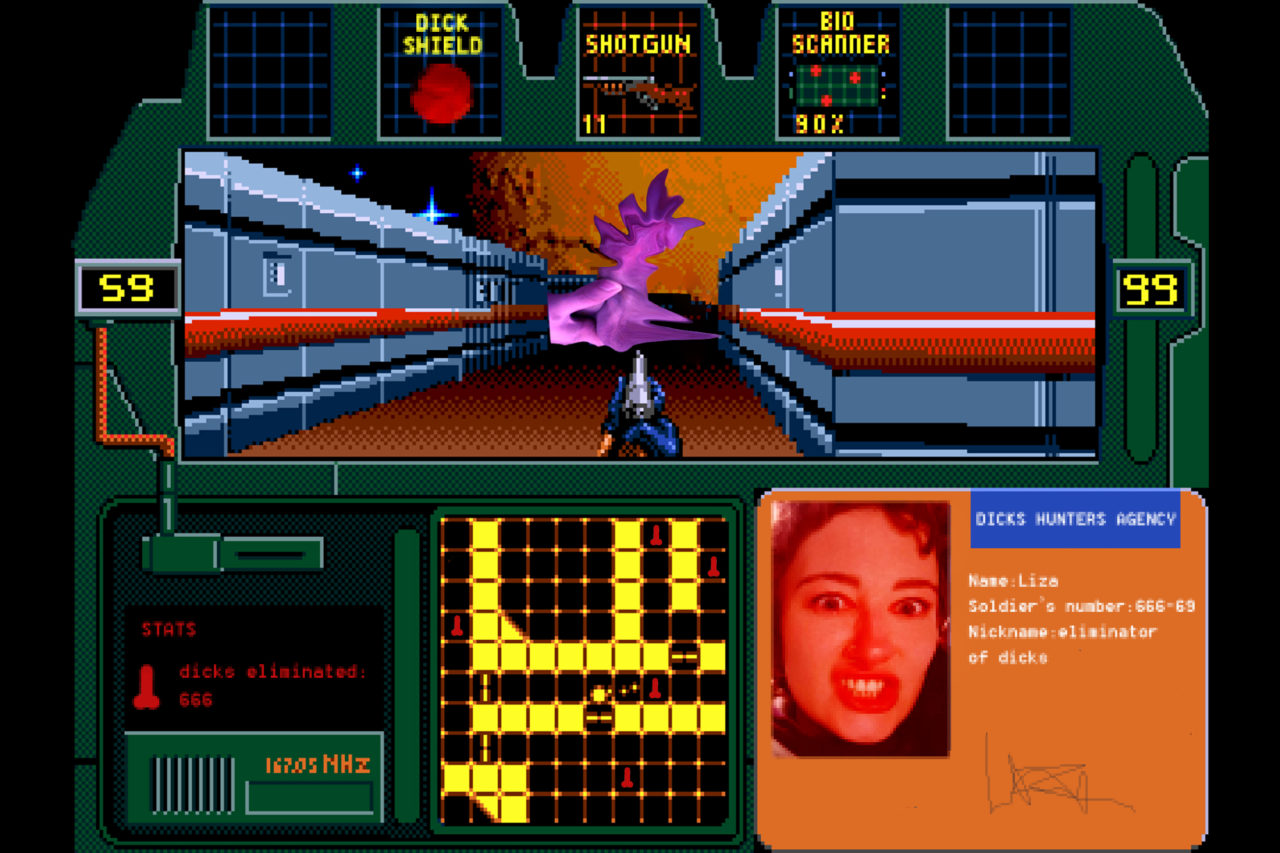 Как визуальную основу для данного проекта я использовал ретроигры для приставок Nes и Sega начала и середины 1990-х годов. Во всех играх всегда есть смелый и сильный герой, который противостоит злу и побеждает. Я представил такими героинями девушек, борющихся с подобным вторжением в утрированном виртуальном пространстве — единственном, где дикпикам можно противостоять, ведь в реальности отправитель остается безнаказанным.«Возводят вокруг своего пениса культ»