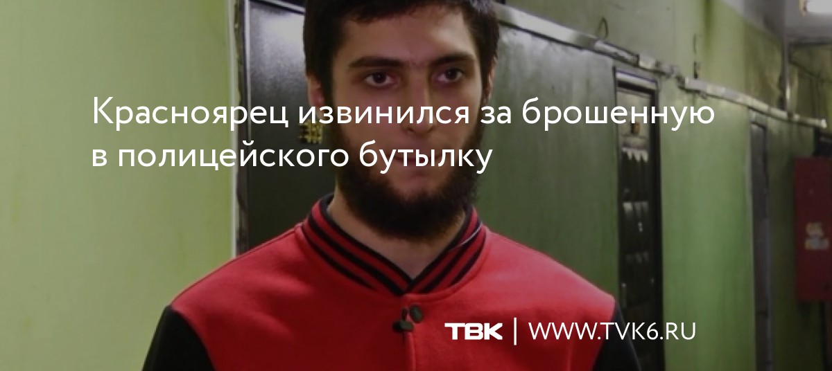 Житель Красноярска принес извинения за брошенную в голову полицейского бутылку. Инцидент произошел во время массовой акции протеста, которая прошла 23 января.