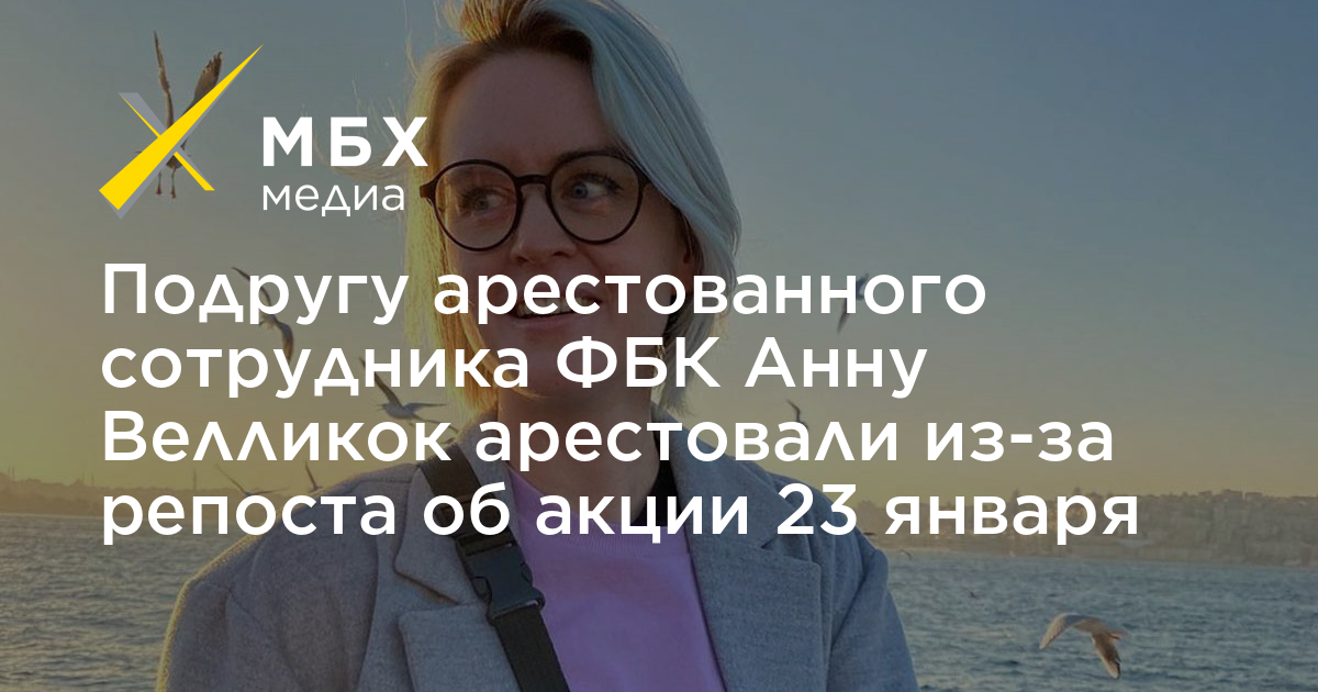 Подругу арестованного сотрудника ФБК Анну Велликок арестовали из-за репоста об акции 23 января