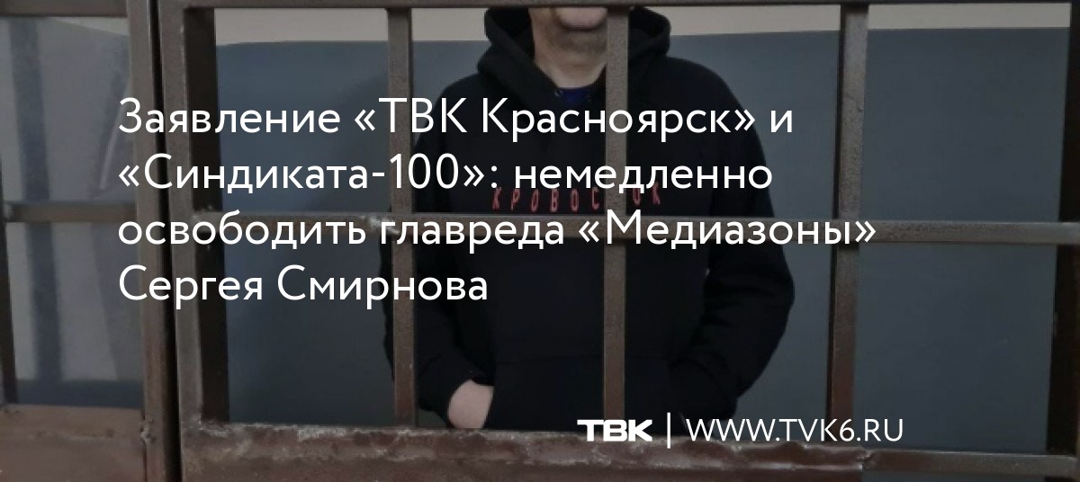 Заявление «ТВК Красноярск» и «Синдиката-100»: немедленно освободить главреда «Медиазоны» Сергея Смирнова