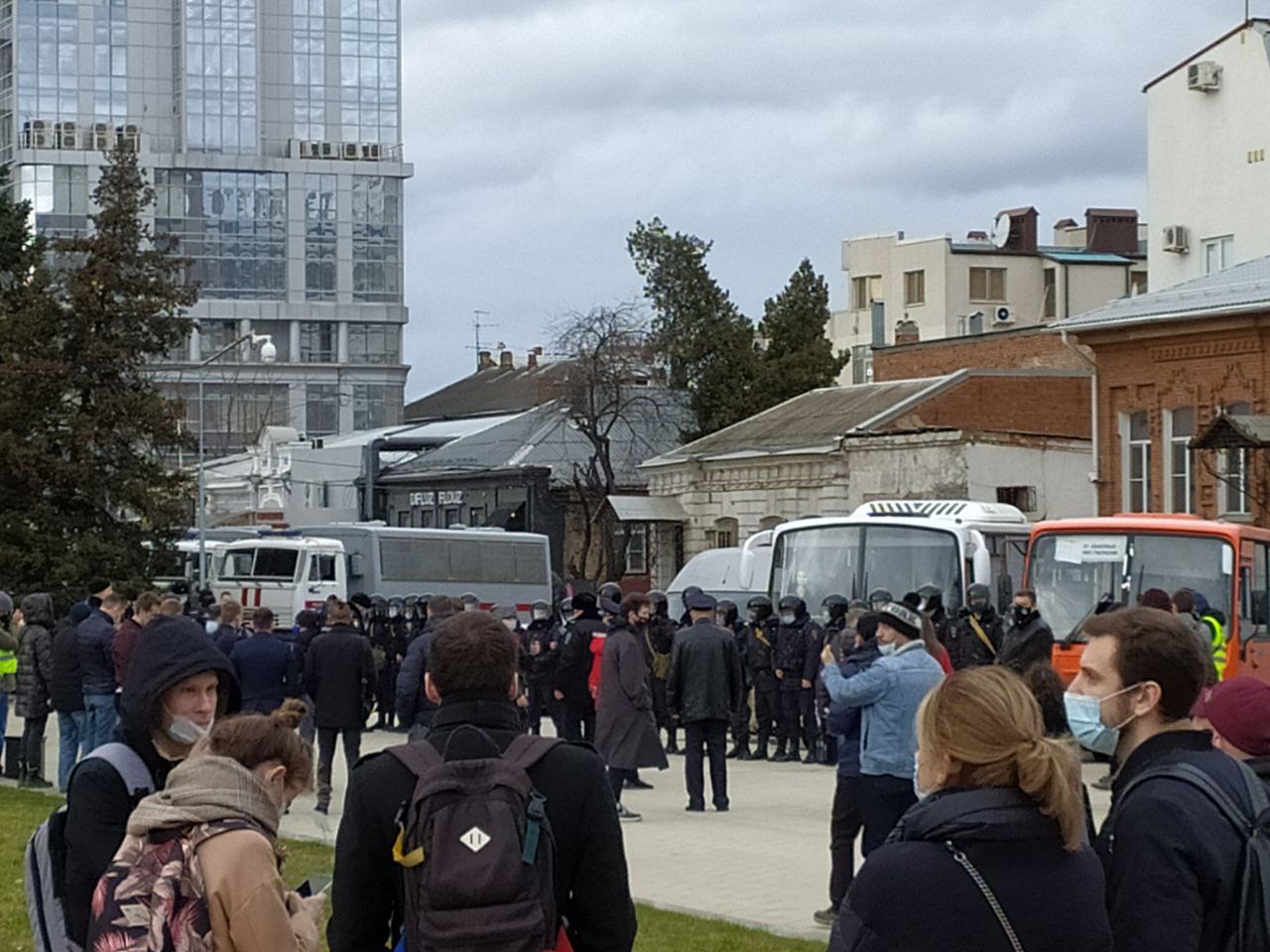 В кубанской столице около полудня протестующие начали собираться около Александровской арки, по приблизительным оценкам участников к этому времени в центре Краснодара собралось около 1500 — 2000 человек: