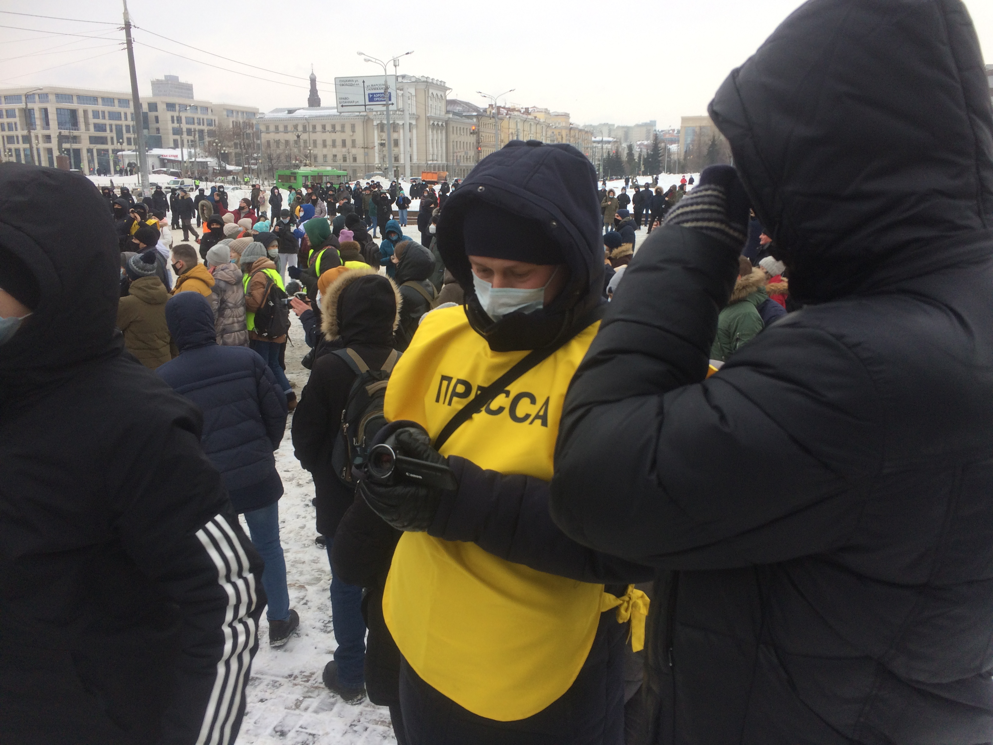 Еще в начале акции Искандер Ясавеев обратил внимание, что силовики одели желтые жилеты с надписью "пресса".