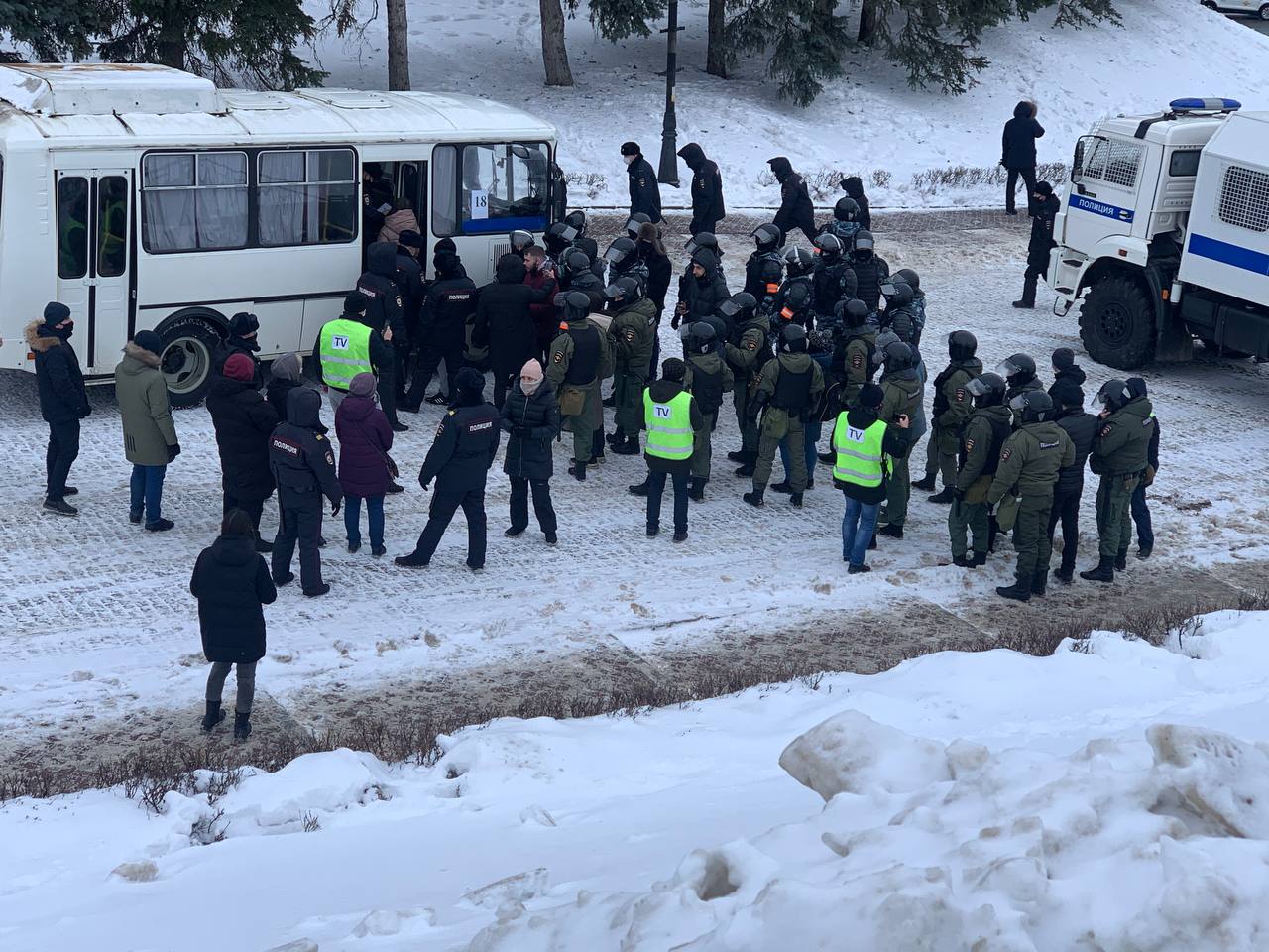 Сегодняшняя акция началась от озера Кабан в центре города. Протестующие попытались пройти по Булаку, но сотрудники перекрыли им дорогу автозаками. В итоге, часть граждан сместили во дворы и задержали, другие — ушли по другим улицам в сторону Кремля.