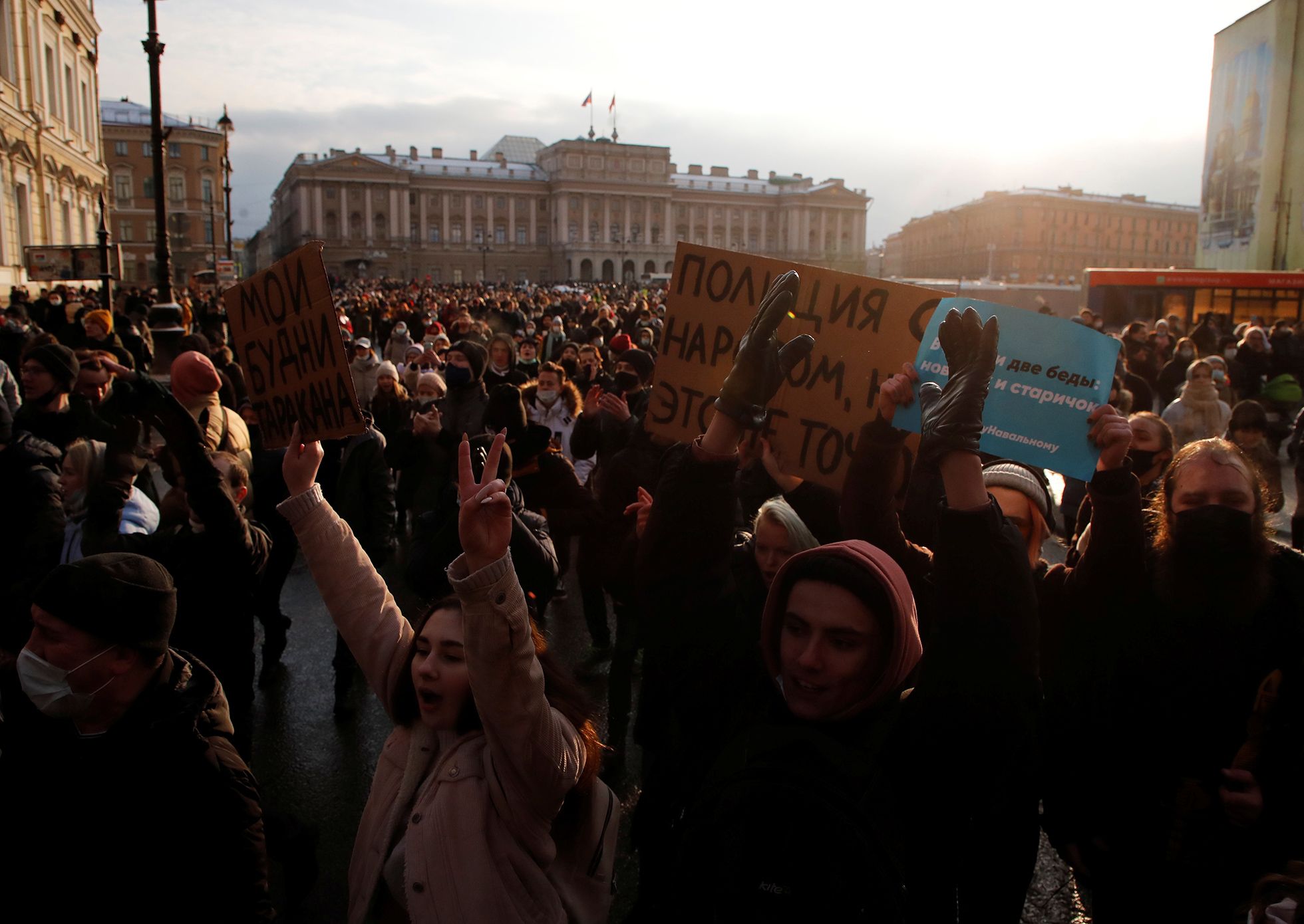 Как и в Москве — там центр города тоже перекрыли — петербургские соратники Навального объявили о переносе места начала акции. Вместо Невского проспекта они выбрали Пионерскую площадь у Театра юного зрителя (неподалеку от Витебского вокзала).