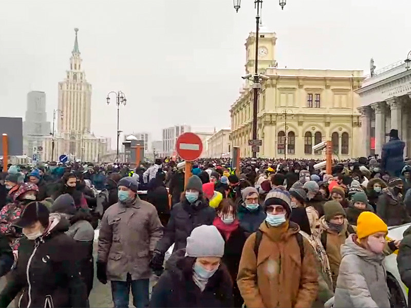 Протестующие в Москве и Петербурге вышли на проезжую часть, парализовав движение транспорта (ВИДЕО)