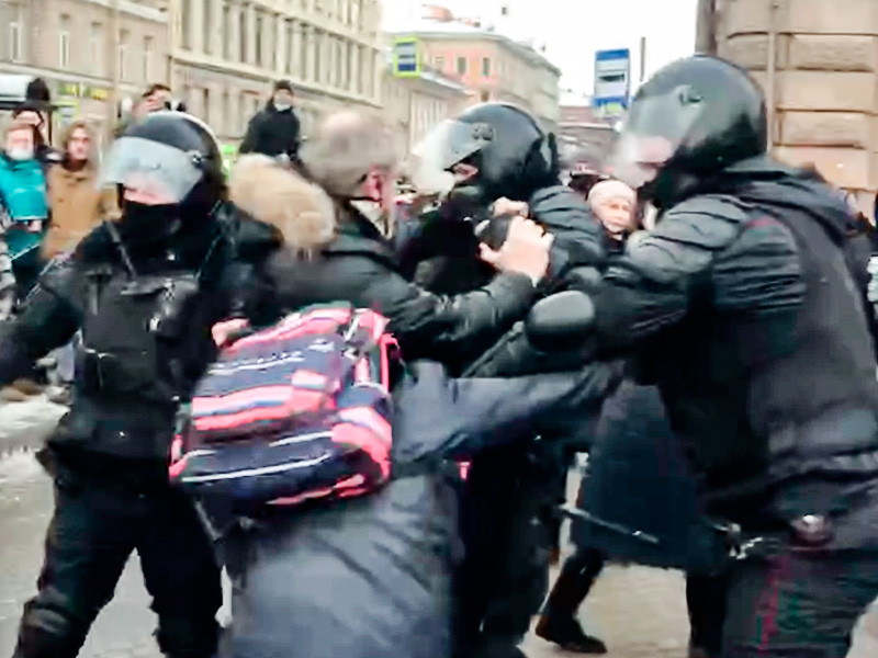 В Санкт-Петербурге полиция применила слезоточивый газ против протестующих на Сенной площади, после того как толпа попыталась отбить задержанных.