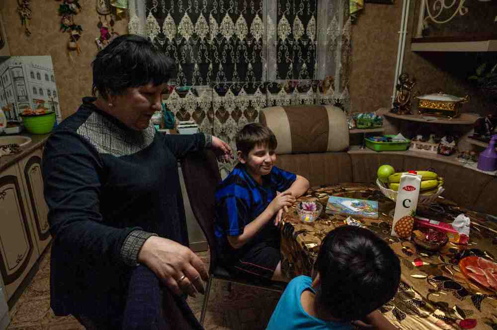 Ольга, Гоша и Арабеска пьют чайФото: Дмитрий Ткачук для ТД Ольга бесконечно рассказывает про детей: вот Гоша и Арабеска, вот старшая дочь и двое внуков, вот средняя — вроде определилась в жизни, вот младший — восемнадцатилетний Толик, которого в семье зовут только котик, — сел за руль и уехал гулять.