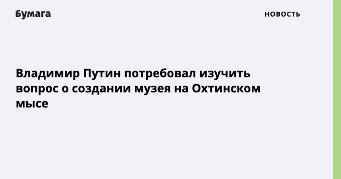 Президент России Владимир Путин поручил изучить вопрос о создании музея-заповедника на Охтинском мысе в Петербурге. Об этом сообщается на сайте Кремля.