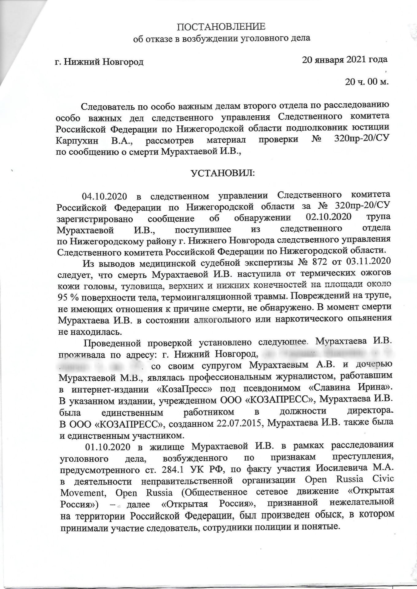 Дата02.02.2021АвторСкрытИсточникКоза ПрессСохранённая копияInternet ArchiveOriginal MaterialShow translationСК в третий раз отказался возбуждать дело по факту смерти Ирины Славиной Следователь по особо важным делам местного управления СК Владимир Карпухин не увидел состава преступления в смерти Ирины Славиной (Мурахтаевой).