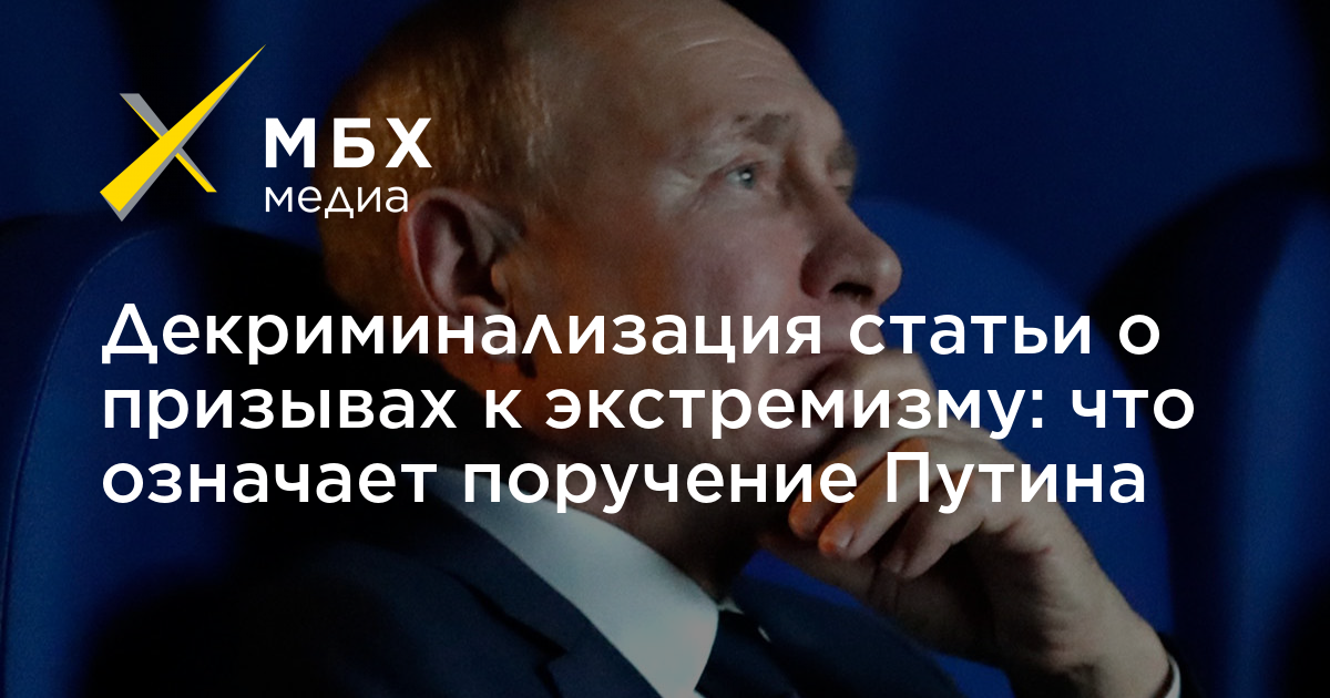 Президент РФ предложил Верховному суду и Генпрокуратуре декриминализировать 280 статью Уголовного кодекса (УК) о публичных призывах к экстремистской деятельности. Рост числа уголовных дел по это статье произошел после декриминализации другой экстремистской статьи — 282-й. Что означает поручение Путина, как будет работать очередная декриминализация, будет ли уголовных дел меньше — в материале «МБХ медиа».