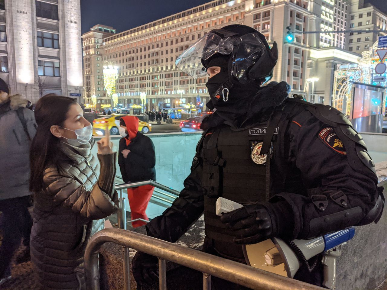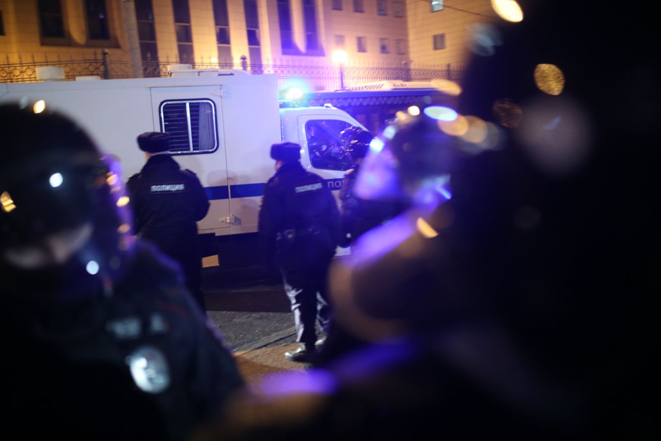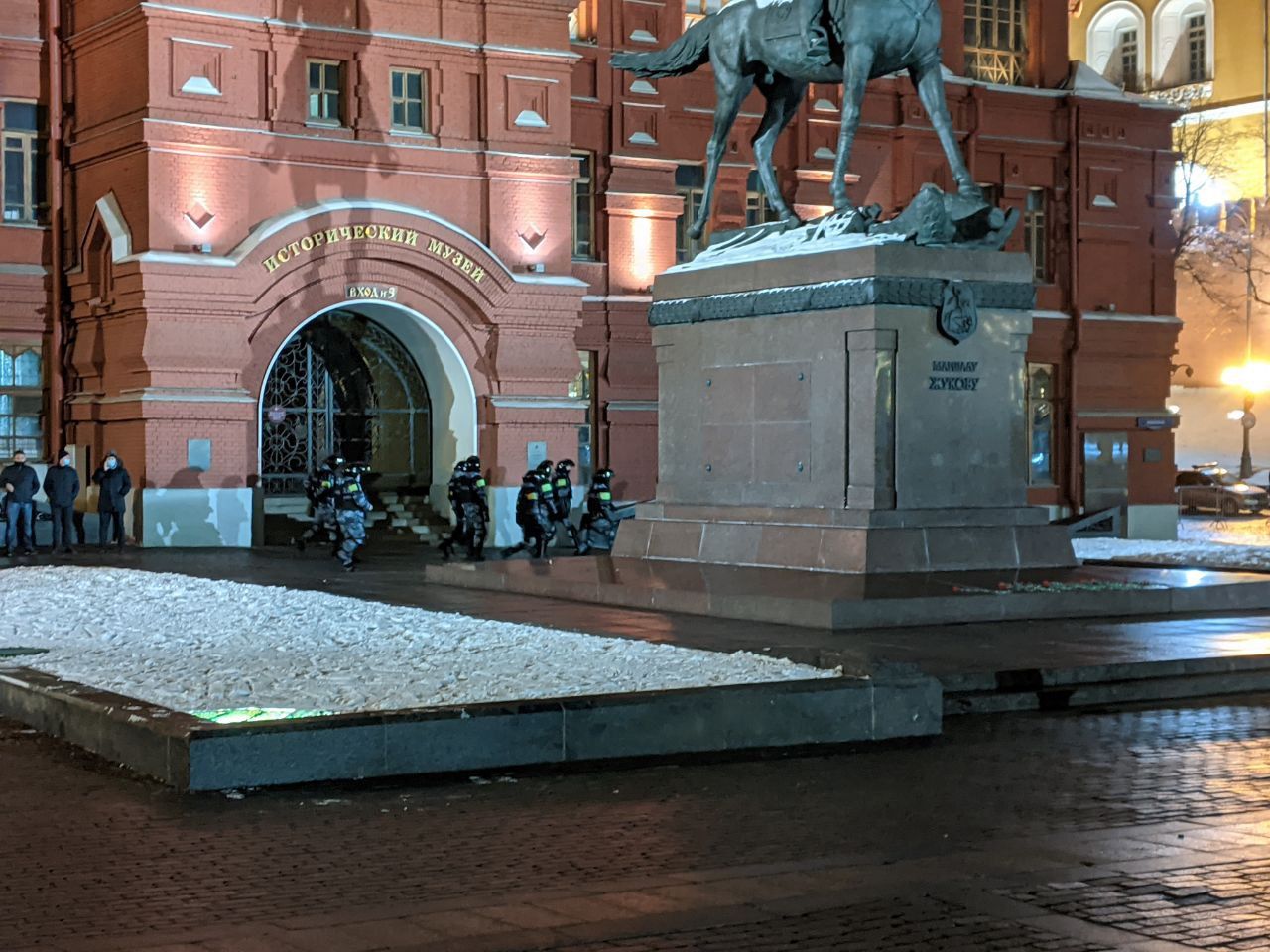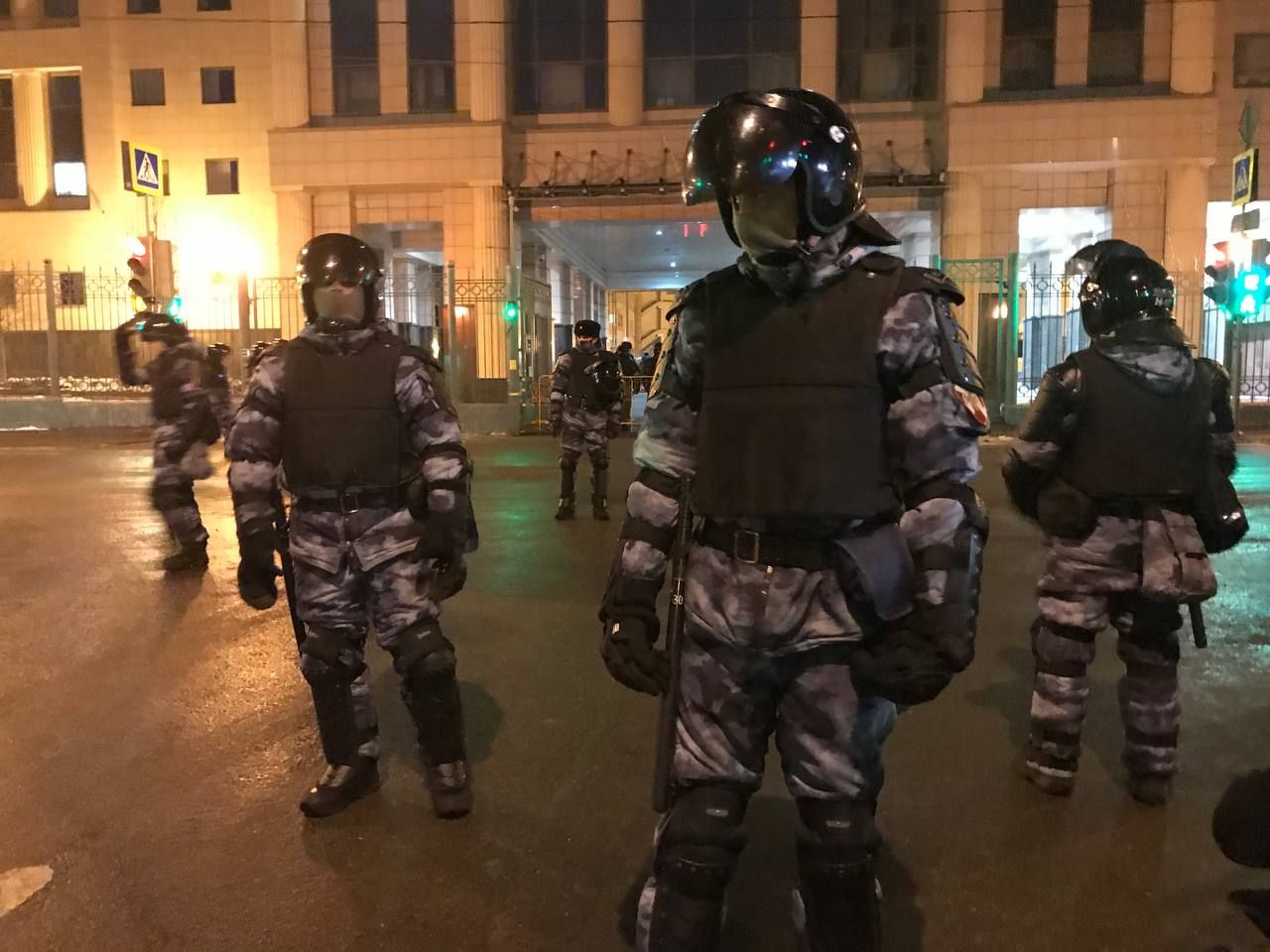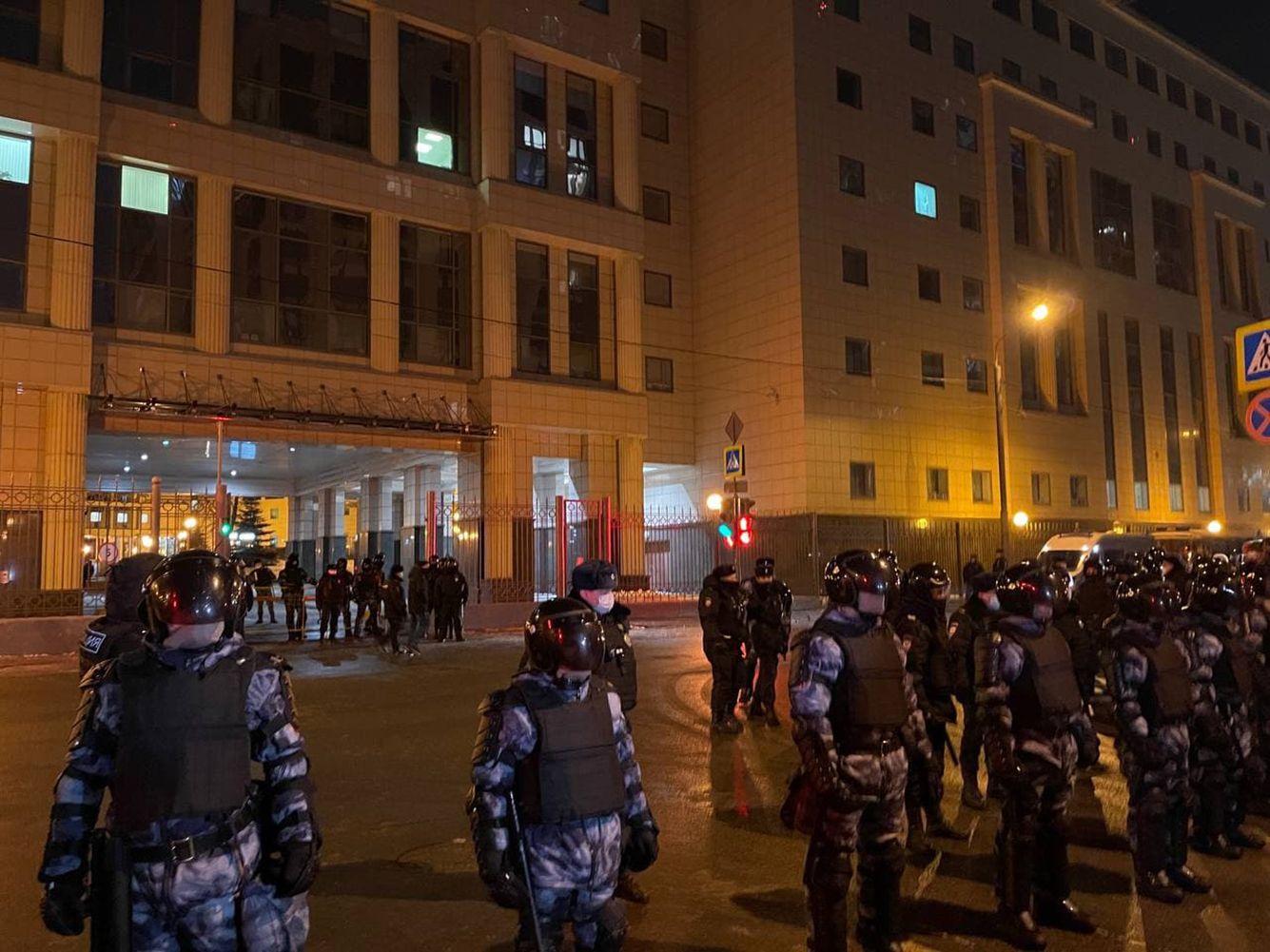 После того, как суд решил отправить Навального в колонию, в центре Москвы полиция оцепила Манежную площадь, начались задержания на Тверской улице. В Санкт-Петербурге — задержания у Гостиного двора.