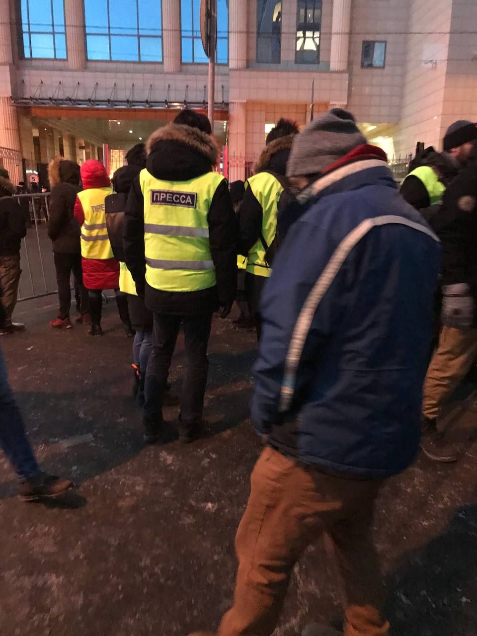 Возле забора, который окружает здания Мосгорсуда несколько десятков журналистов, большая часть которых в однотипных светоотражающих жилетах, сообщает корреспондент «Медузы».