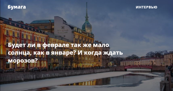 В январе солнце светило меньше 10 часов, будет ли февраль таким же пасмурным? Когда начнется похолодание и выпадет ли еще снег? Главный синоптик Петербурга Александр Колесов рассказывает о прогнозе погоды на текущий месяц.