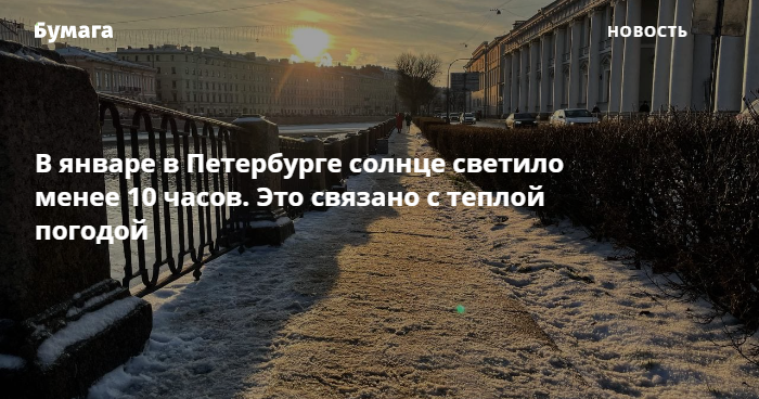 По словам Колесова, в третьей декаде января солнца в городе не было вообще. Это связано с тем, что солнечно бывает в холодную погоду, а в январе в Петербурге была только одна морозная неделя.