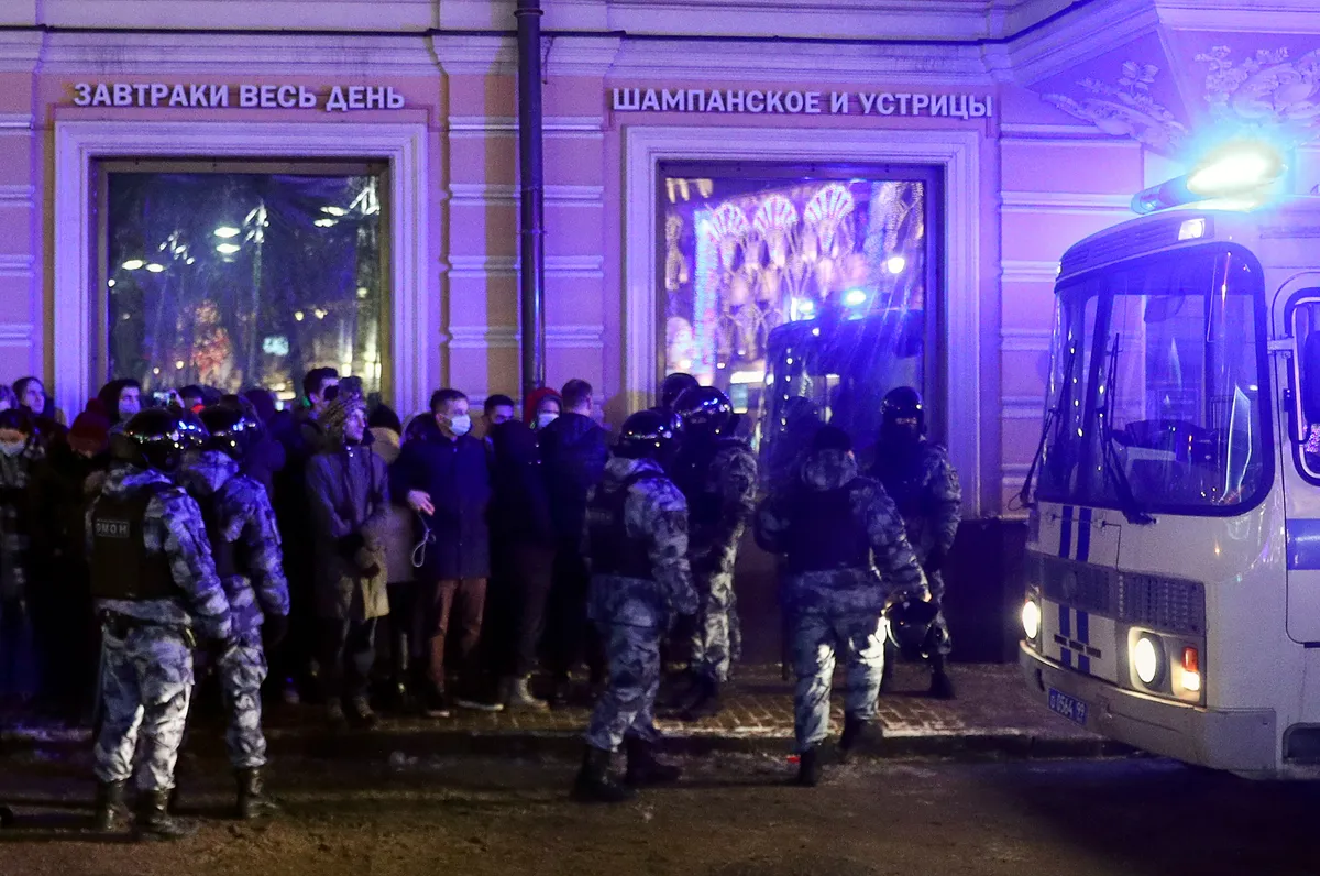 Второго февраля Симоновский районный суд Москвы изменил условный срок политика Алексея Навального по «делу „Ив Роше“» на реальный. После этого Штаб Навального объявил о сборе протестного митинга на Манежной площади в Москве. Полиция и ОМОН быстро перекрыли площадь, поэтому несколько колонн протестующих прошли по центральным улицам Москвы. Их жестко задерживали и избивали.