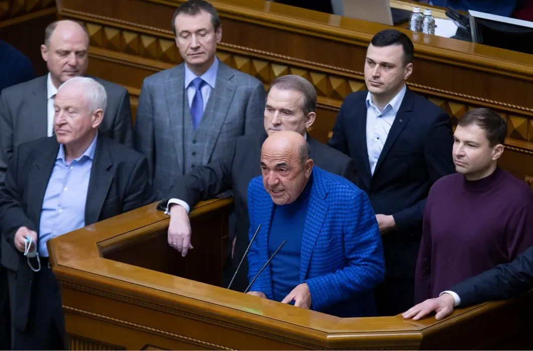Подобной решительности от Зеленского никто из частей парламентской оппозиции — хоть прокремлевской, хоть национально-демократической — не ожидал. Первые на утреннем заседании Рады сгрудились у трибуны. Рядом с оратором, сопредседателем ОПЗЖ Вадимом Рабиновичем, встал его коллега Виктор Медведчук — молча.