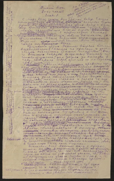 Однако что ж получилось? Спасти документы удалось, но в итоге богатства архива Шолохова разделены по разным владениям двух научных институтов; кроме того, большая часть биографических материалов и переписки Шолохова попала в РГАЛИ. Везде строгие порядки, и пока исследователь получит разрешение, добежит, долетит, доползет до другой территории, да разберется с местными правилами, да преодолеет множество препятствий, что-то обязательно случится — либо командировку не утвердят, либо эпидемия грянет — и всё закроется. А вопрос по-прежнему останется нерешенным. И тут два научных института и портал «Автограф» нашли выход: оцифровали и выложили на портал собрание Пушкинского Дома [2] — а там главы «Тихого Дона», «Поднятой целины», фрагменты романов для отдельного издания («Дед Щукарь») — и договорились с ИМЛИ РАН об оцифровке и публикации их части собрания в 2021 году. Итак, уже в этом году впервые в свободном доступе в Интернете появятся все сохранившиеся рукописи «Тихого Дона».