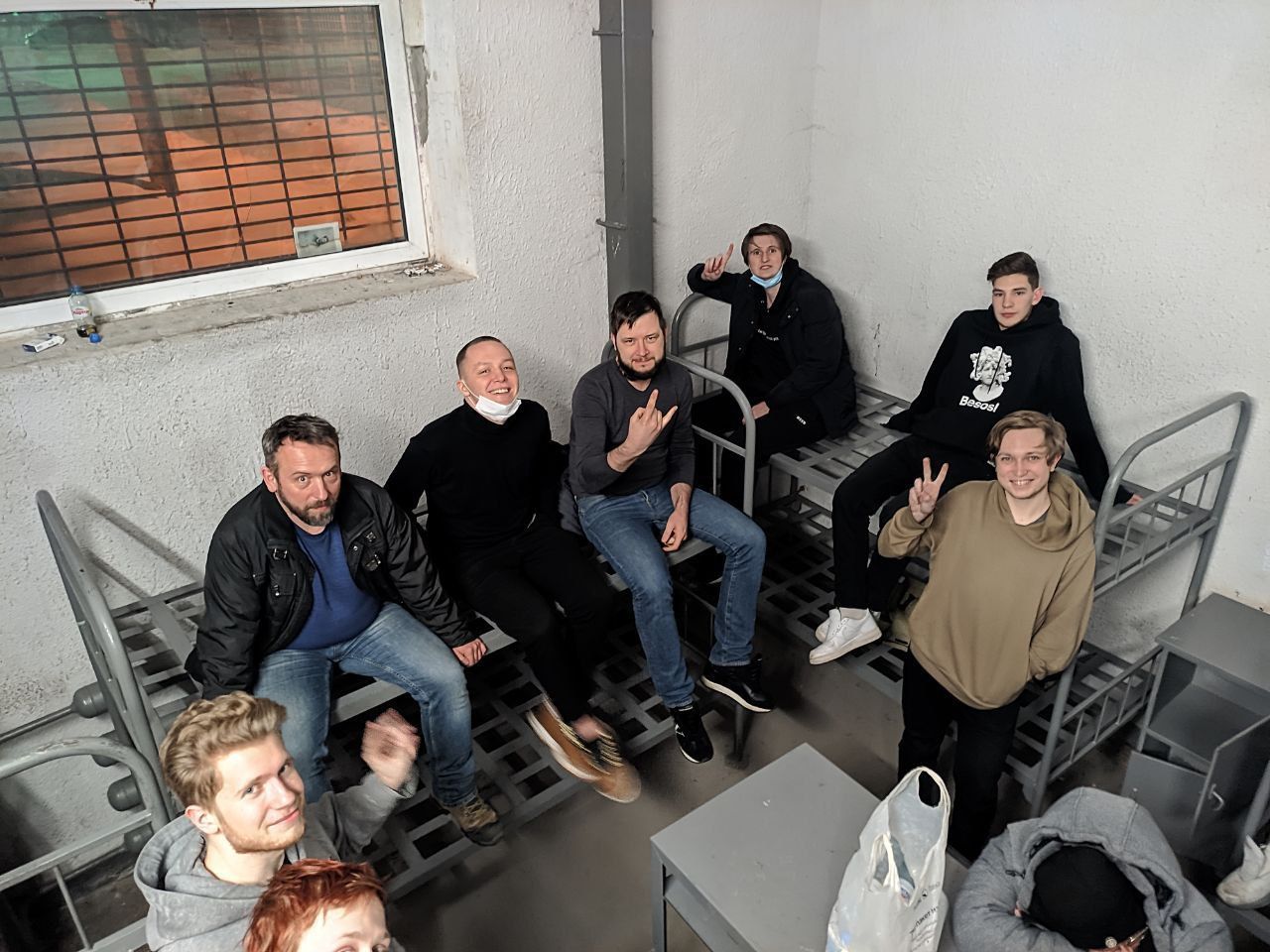 Mediazona editor-in-chief Sergey Smirnov found himself in a similar situation after he was sentenced to 25 days administrative arrest on February 3 for retweeting a post that was later deemed to incite participation in a pro-Navalny rally. The police van he was in remained parked outside the special detention center in Sakharovo for about three hours. Around 5:00 a.m. local time on February 4, he and 27 other detainees were placed temporarily in a holding cell meant to accommodate eight people — it had just four bunk beds, all without mattresses. Smirnov and the other detainees were moved to other cells around noon. Here’s what the conditions are like at the detention center in Sakharovo.