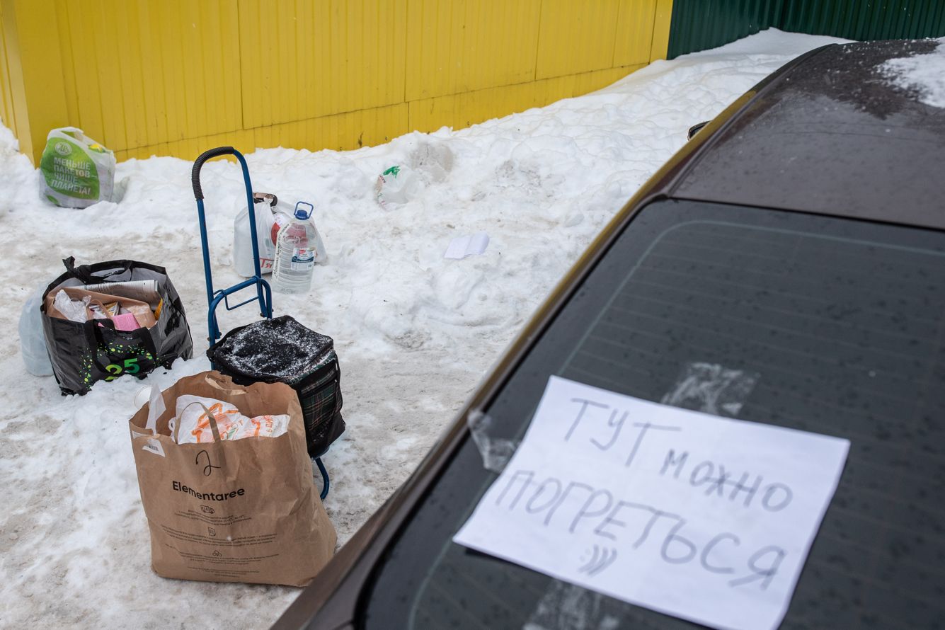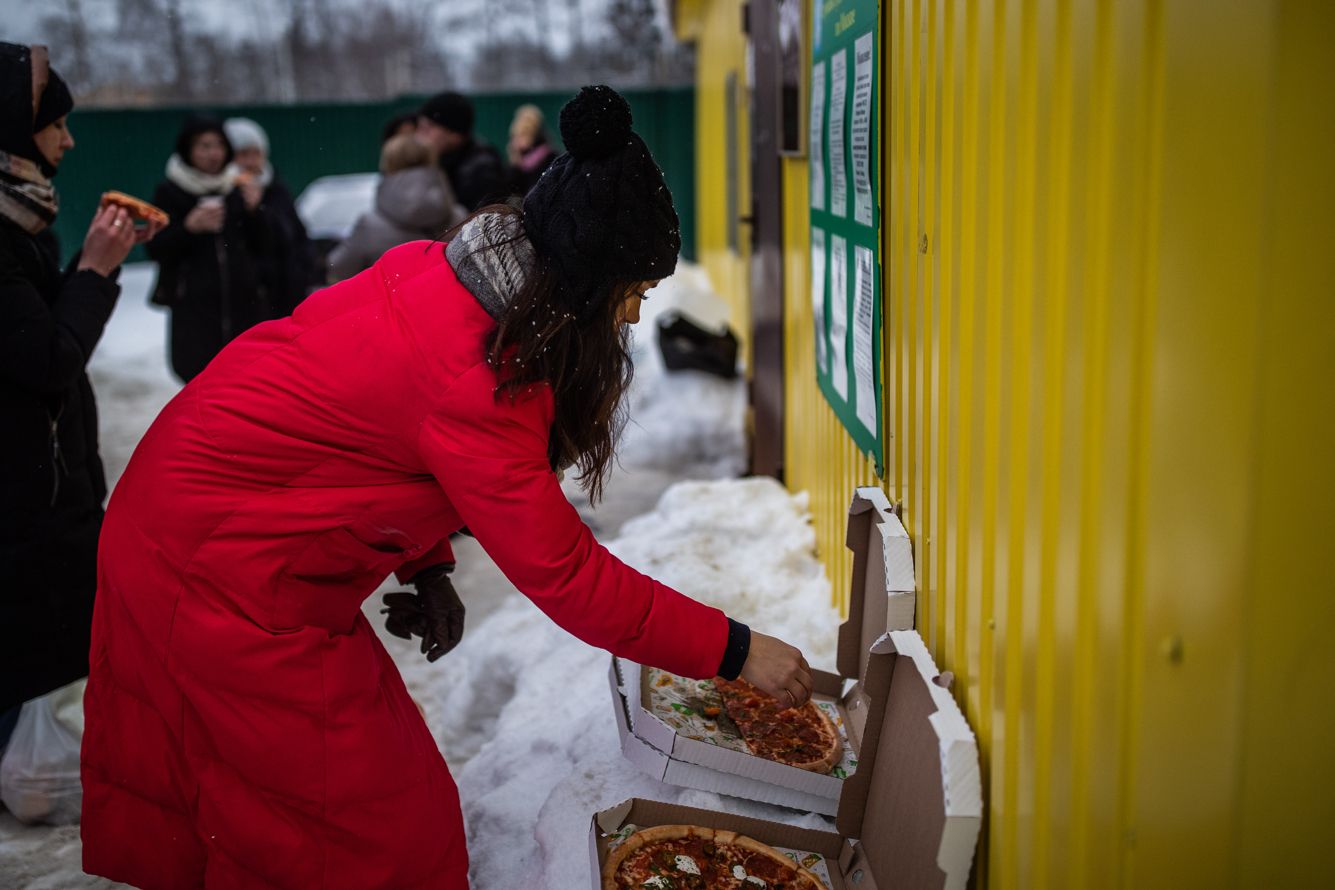 Продукты задержанным привозят и абсолютно аполитичные люди. 30-летняя женщина в шубе рассказала «Медузе», что приехала помочь, увидев в тиктоке ролик с задержанными москвичами, которые томятся в автобусе в очереди к изолятору. На акции она не ходит — надо быть дома с маленьким ребенком, но людей, вышедших «против лжи», поддерживает. Работу — администратором в компании по продаже здорового питания — волонтер потеряла за время пандемии. Не смогла сидеть дома, взяла такси и поехала в Сахарово.