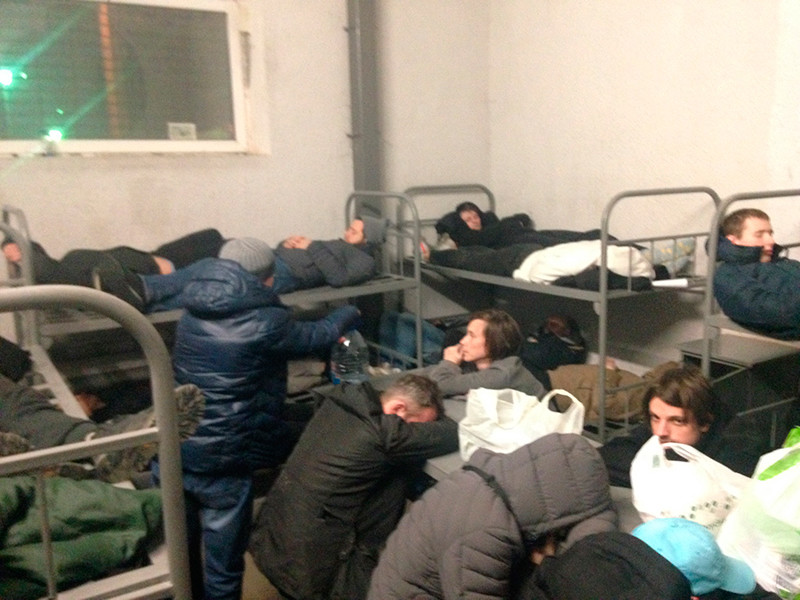 Посмотрите на этот кадр. Утро в специальном изоляторе в Сахарово. В камере на 8 мест 28 человек спят после бессонной ночи в автобусах. В центре кадра, держась за стойку, пытается спать Смирнов. Полный коллапс. pic.twitter.com/WOc8xH4s4v