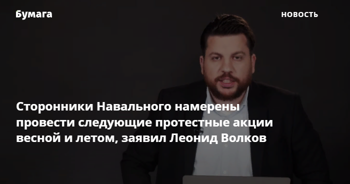 Следующие протестные акции сторонников Алексея Навального пройдут весной и летом. Об этом в эфире ютьюб-канала «Навальный Live» заявил руководитель сети региональных штабов политика Леонид Волков.