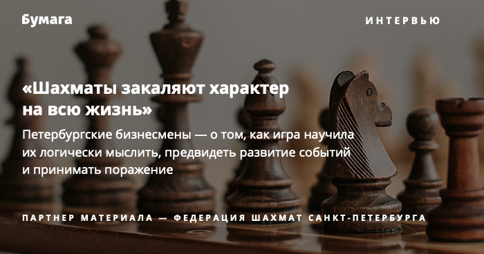 Для партнерского материала со Спортивной федерацией шахмат Санкт-Петербурга «Бумага» поговорила с петербургскими бизнесменами из банка ВТБ, авиакомпании «Россия» и Setl City. Они рассказали, как любовь к шахматам помогла им в карьере.