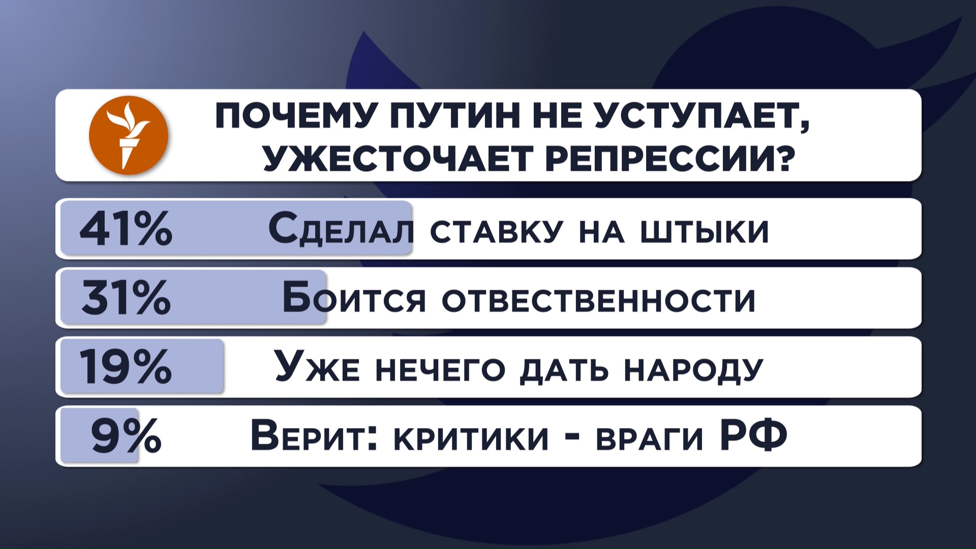 Михаил Соколов: В интернете у нас вывод, что сделал ставку на штыки Путин – 41%, боится ответственности – 31%, нечего дать народу – 19%. Мне кажется, самое интересное – это перелом в настроениях молодежи сейчас.