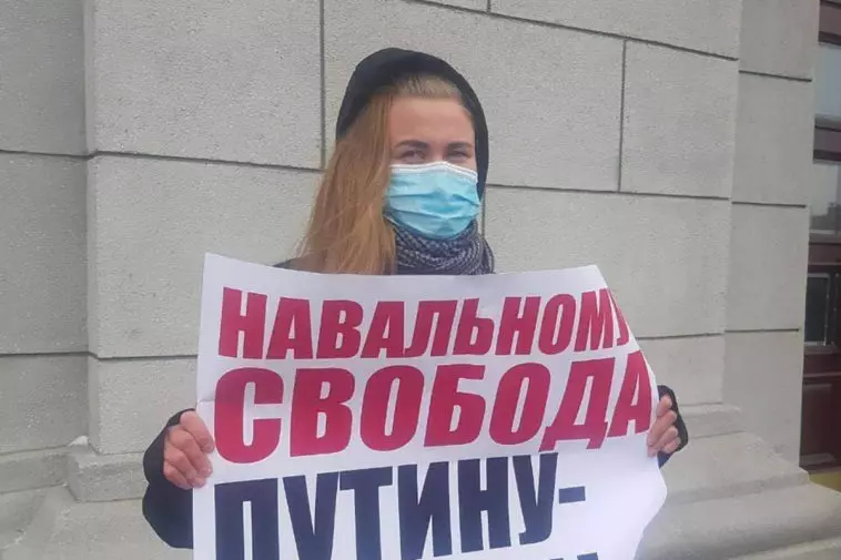 В Новосибирске активистку задержали за пикет с плакатом «Навальному свобода»