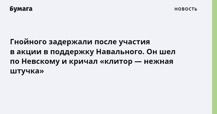 Вячеслава Машнова (известного как Гнойный и Слава КПСС) задержали в Петербурге после участия в стихийной акции в поддержку Навального, которая прошла 2 февраля. Рэпер шел по Невскому и кричал «Клитор — нежная штучка». «Бумага» публиковала видео.