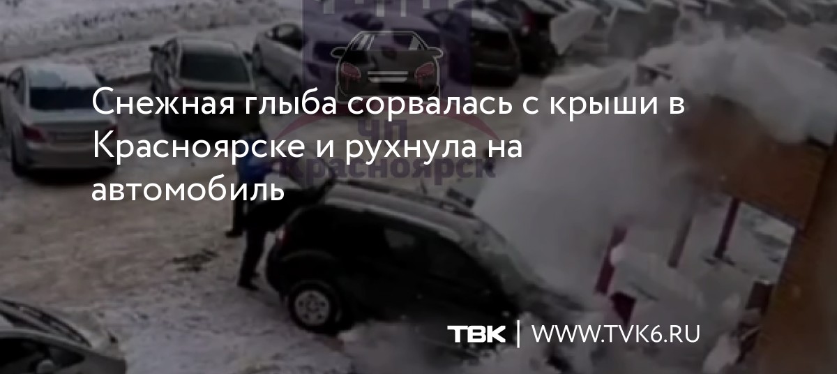 Снежная глыба сорвалась с крыши в Красноярске и рухнула на автомобиль