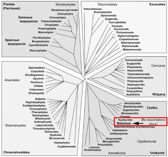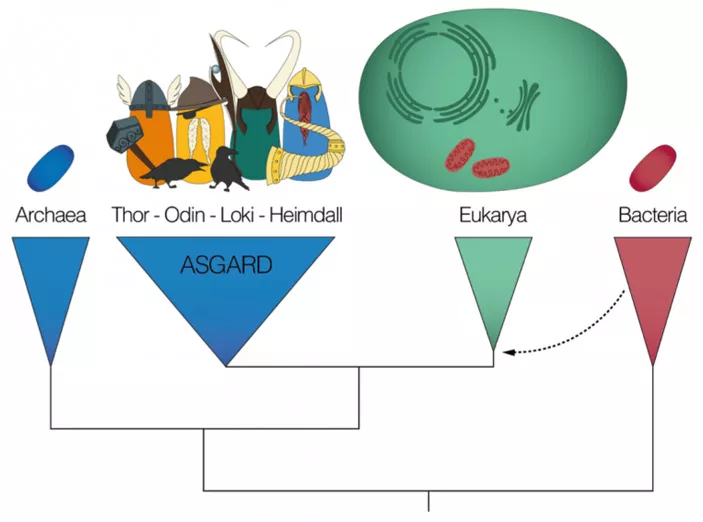 Эукариоты появилась на эволюционной сцене относительно поздно — около 1,65 млрд лет назад (хотя есть мнение, что несколько раньше). Ближайшие из ныне существующих родственников эукариот — асгардархеи (их живых представителей обнаружили японцы совсем недавно — в 2019 году). Не исключено, что всех эукариот можно рассматривать как одну из ветвей асгардархей (подобно тому, как птицы рассматриваются лишь как одно подмножество рептилий, о чем скажем отдельно).