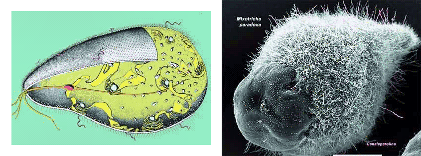 Например, считается, что лишайники — это продукт симбиоза гриба и водоросли. А в кишечниках реликтовых австралийских термитов живет чудо-юдо по имени Mixotricha paradoxa — трихомонада, помогающая насекомым усваивать целлюлозу. Мало того, что миксотриха по отношению к термиту сама симбионт, так она еще и «приручила» целую бригаду бактерий низшего ранга. Более 250 000 клеток разных видов прокариот (палочки, спирохеты) прикреплены к ее телу, выполняя функцию гребцов на галерах — благодаря их работе хозяйка передвигается. Место митохондрий в замысловатом нутре миксотрихи занимают симбиотические аэробные бактерии (митохондрии утратились в ходе эволюции).