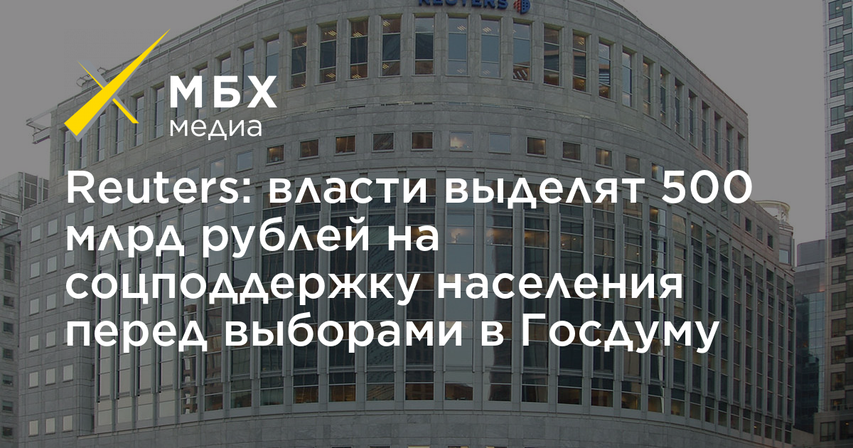 Reuters: власти выделят 500 млрд рублей на соцподдержку населения перед выборами в Госдуму