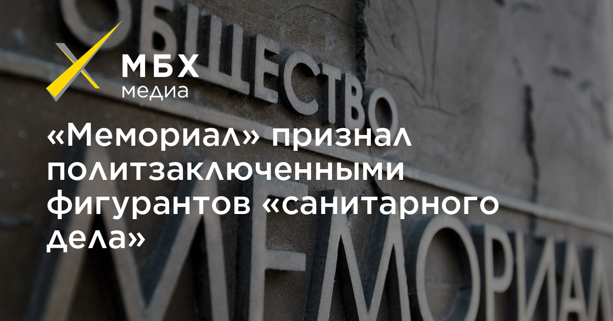 Правозащитный центр «Мемориал» признал узниками совести 10 обвиняемых по так называемому «санитарному делу». Эксперты полагают, что к их эпизодам применимо понятие «политический заключенный» в трактовке Парламентской ассамблеи Совета Европы.