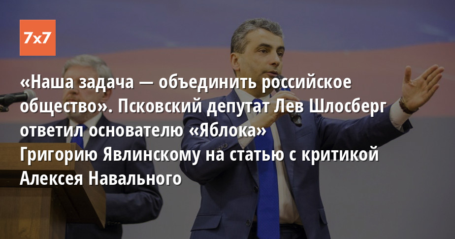 «Наша задача — объединить российское общество». Псковский депутат Лев Шлосберг ответил основателю «Яблока» Григорию Явлинскому на статью с критикой Алексея Навального