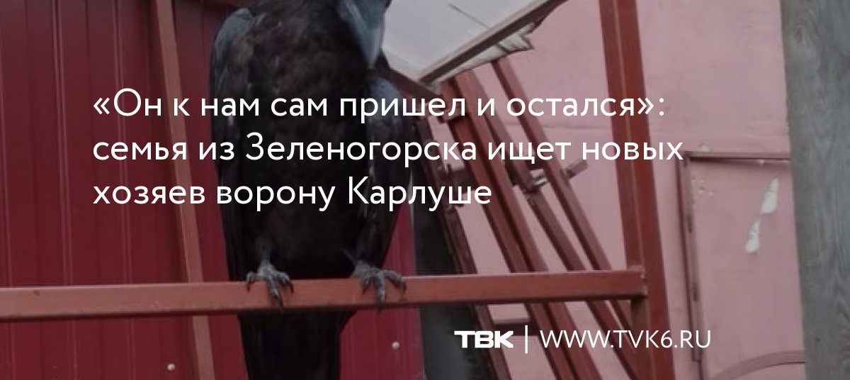 «Он к нам сам пришел и остался»: семья из Зеленогорска ищет новых хозяев ворону Карлуше