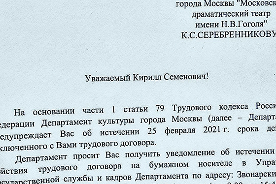© kirillserebrennikov / Instagram Сегодня, 9 февраля, художественный руководитель московского театра «Гоголь-центр» Кирилл Серебренников получил из департамента культуры Москвы уведомление о том, что с ним не будет продлен контракт действие которого заканчивается 25 февраля.