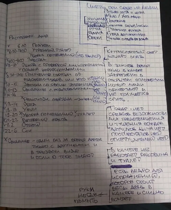 Спецприемник на улице Гагарина. Иван делал записи, на них — распорядок дня и рассказ об условиях, в которые попадают арестованные: